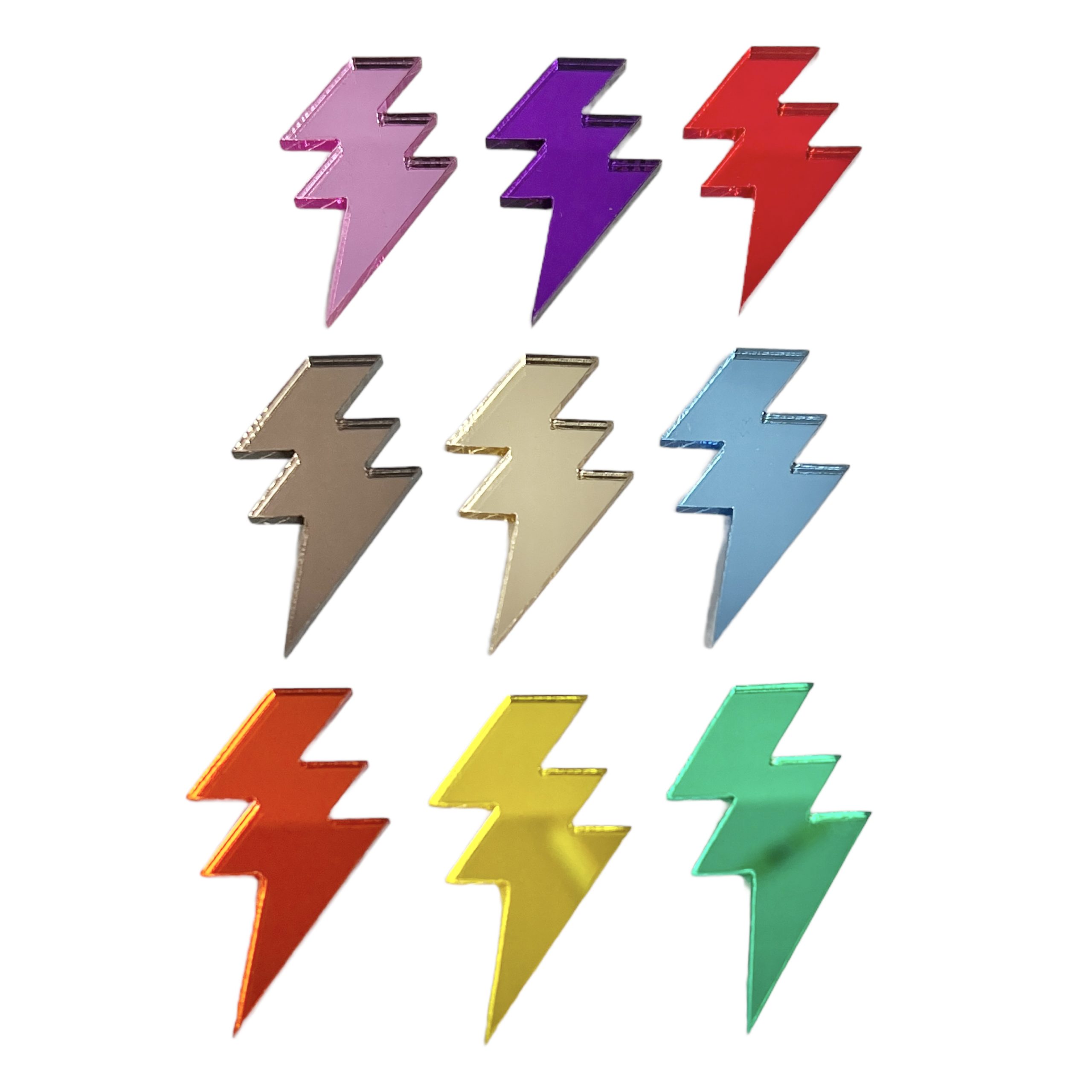Pendientes de metacrilato espejo con forma de rayos con unas medidas de 40 x 22 mm.